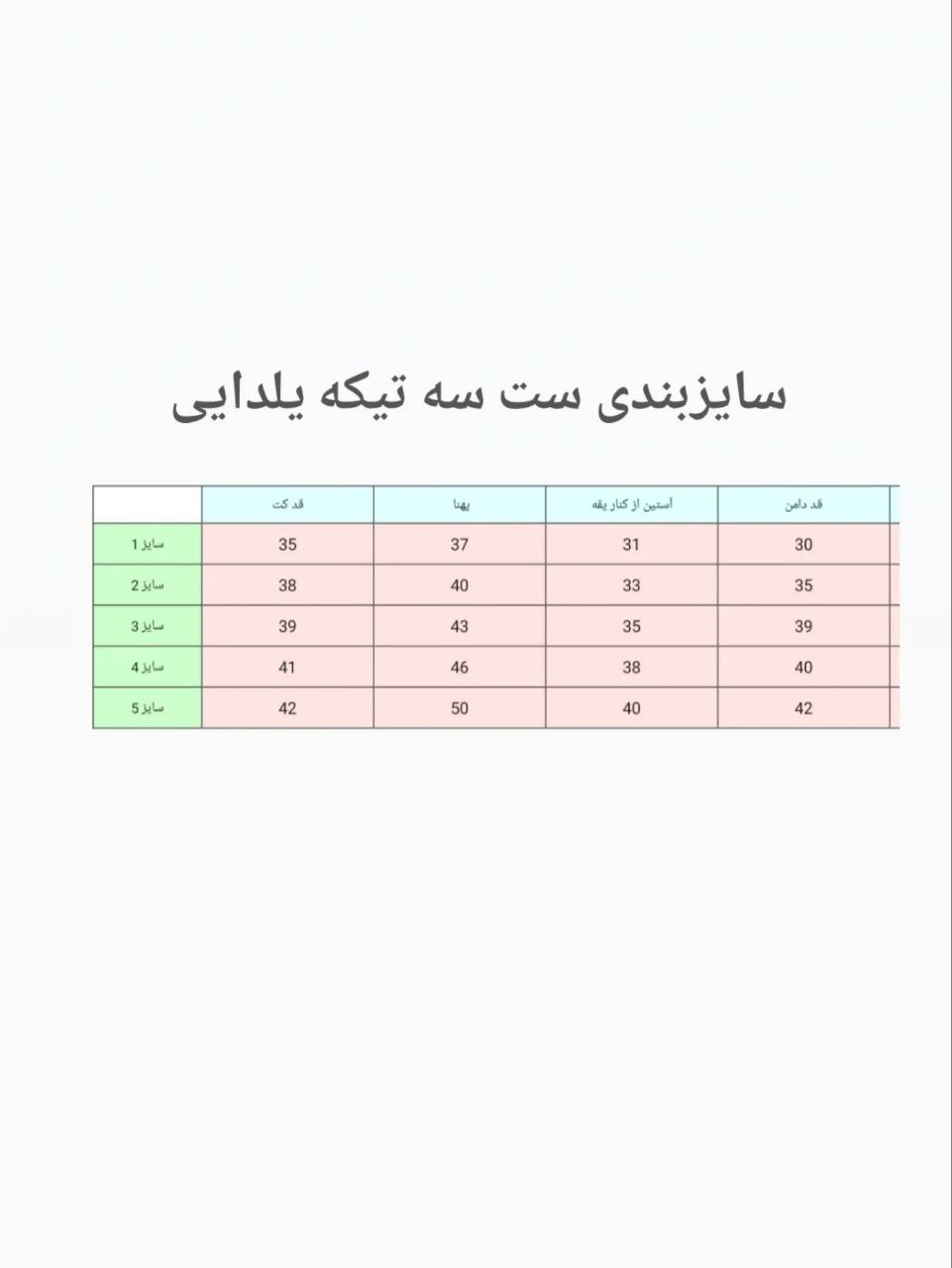جدول سایز بندی تصویر آخر