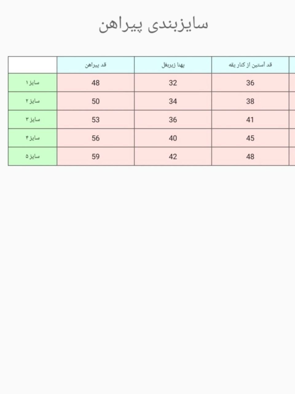 جدول سایز بندی اسلاید اخر
