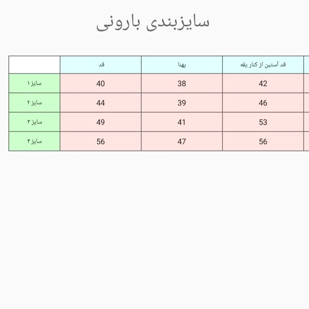 جدول سایزبندی اسلاید آخر